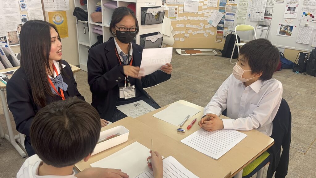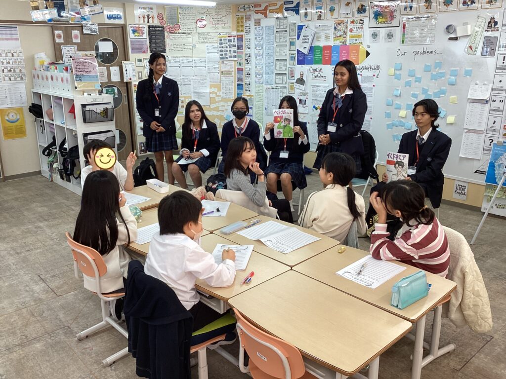11月6日(木)の授業では、大阪府立東淀川高等学校の生徒6名が、4年生のゲストティーチャーとして来てくれました。